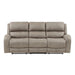 Transitional style is exemplified in the Pagosa Collection, its design pairing plush contoured seating, and versatility of style to create a relaxing space within your home’s living room. The plush contoured profile of the collection is covered in brown polished microfiber. With a pull of the side mounted tabs the dual end reclining mechanisms are engaged easing the sofa into the prone position. 84.5 x 38 x 40H