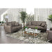 LAURITZ Loveseat, Brown, 54 1/4"L X 30"W X 35"H, 86lbs. Introduce soft color and contemporary elements to your living room with these coastal inspired seats. This sofa offers a relaxed rounded arm, high density foam backing and seating, and artistic white and blue throw pillows to maximize both the physical comfort of your room and the visual gentleness. The metal legs add a touch of ultra modernity and a visually striking silhouette, to set this toned camel brown sofa even further apart from the crowd.