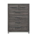 The sleek design of the Zephyr Collection pairs clean lines with modern convenience to create a style that will be the perfect palette for your design aspirations. Visually tying the chest together are the painted metal-finish banding of the base rail and the metal bar hardware that fronts each drawer, culminating in an accenting contrast to the dark gray faux wood finish of the melamine veneer.