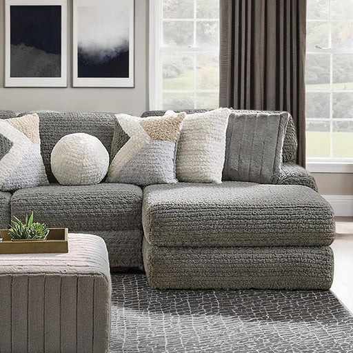 Complete your spacious modern living room with this beautifully designed modular sectional, featuring soft, textural fabric. Feather blend-wrapped ...