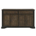 The traditional styling that comprises the design of the Stonington Collection creates an elegant country look for your dining room. Oak and walnut-inlay veneers are finished in a 2-tone brown and charcoal creating a perfect contrast that highlights the distinct patterns of each wood’s grain. Providing additional display and storage space within your dining room is the server. Antique brass-finished ring-pull and knob hardware front the drawers and doors of the server. 66 x 19 x 38.5H