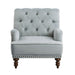 An air of refined tradition lends its elegance to the design of the Holland Park Collection. Tailored to enhance the graceful curves of the chair’s profile, classic accenting in the form of turned legs and button tufting further the timeless look of the piece. Dark Blue velvet upholstery covers the chair, its rich hue a perfect complement to your space.